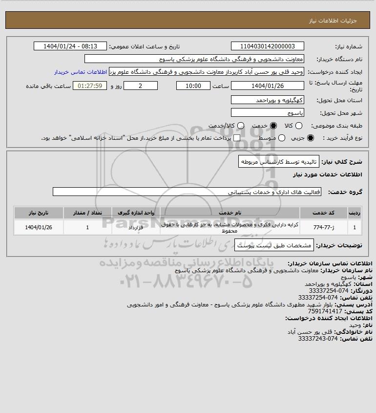 نام دستگاه خریدار:معاونت دانشجویی و فرهنگی دانشگاه علوم پزشکی یاسوج