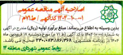 اصلاحیه آگهی مناقصه عمومی 1404-10-001 کد آگهی/ ط 71 م/