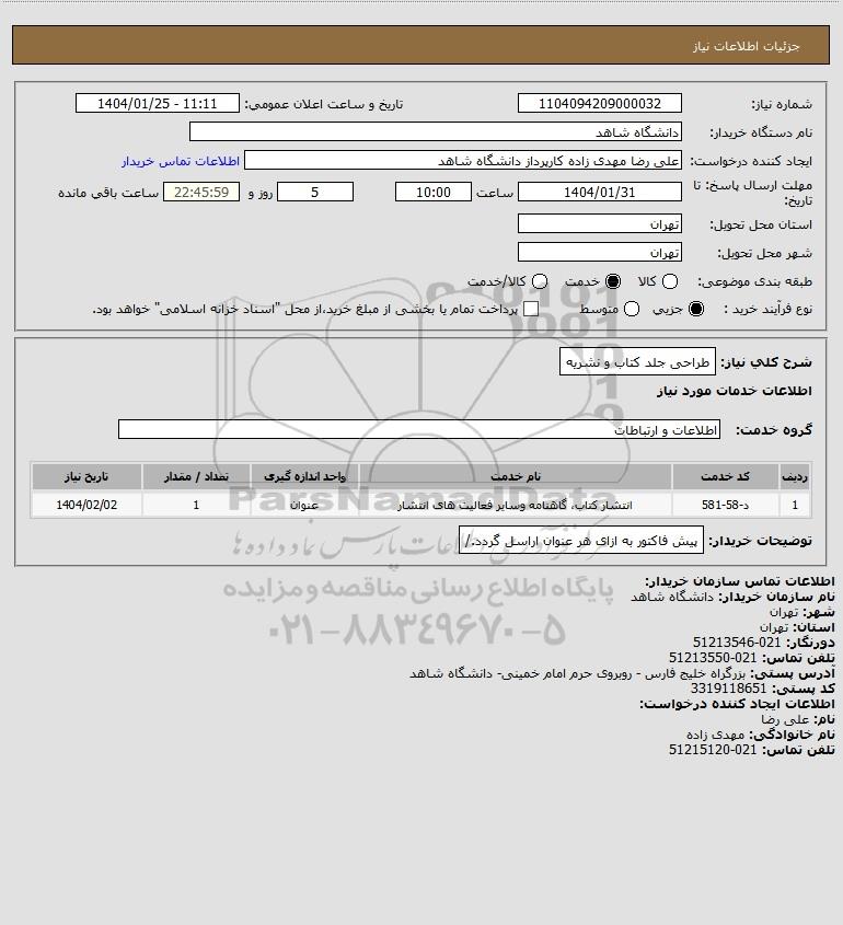 شرح کلی نیاز: طراحی جلد کتاب و نشریه