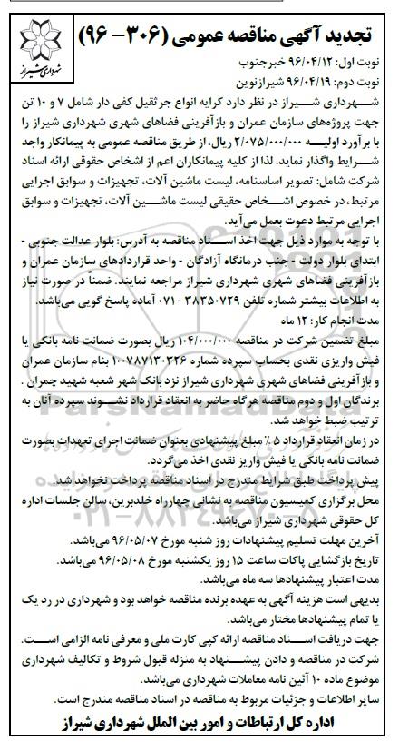 آگهی تجدید مناقصه عمومی 306- 96؟