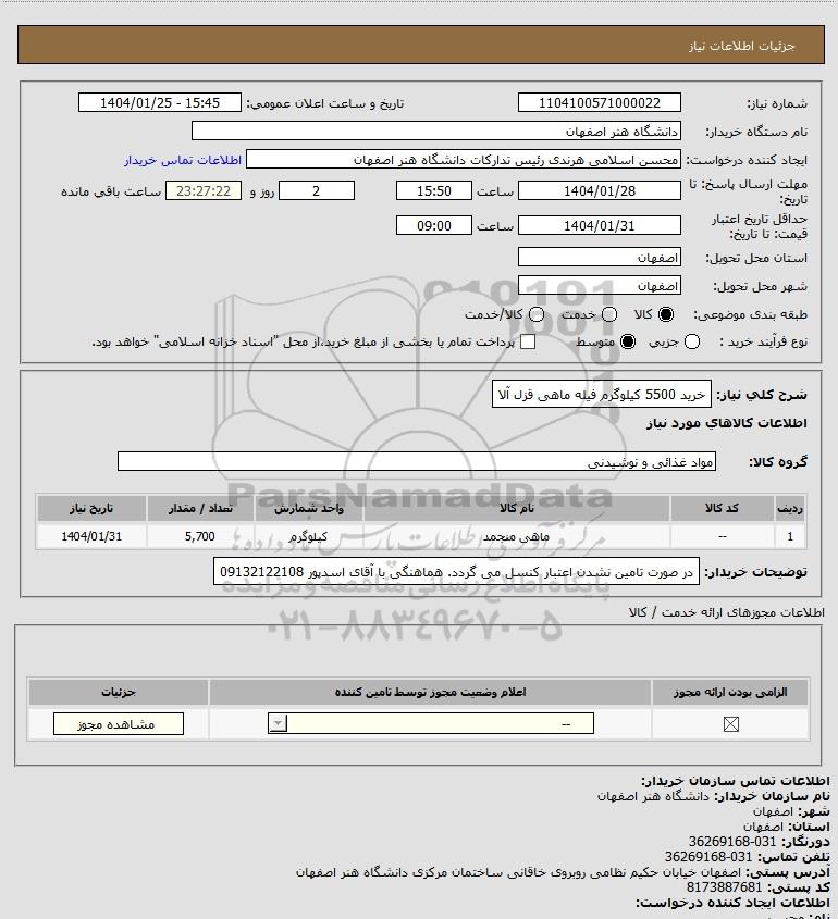 شرح کلی نیاز: خرید 5500 کیلوگرم فیله ماهی قزل آلا