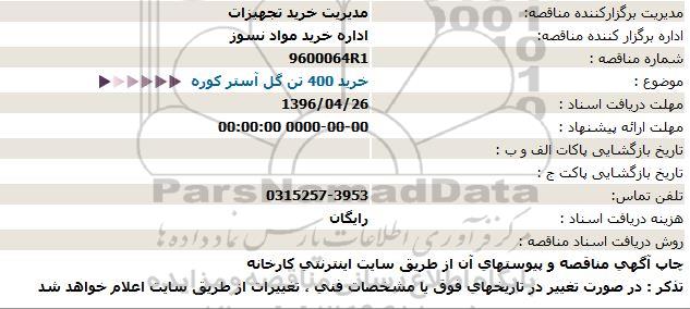 اداره برگزار کننده استعلام: اداره خرید مواد نسوز