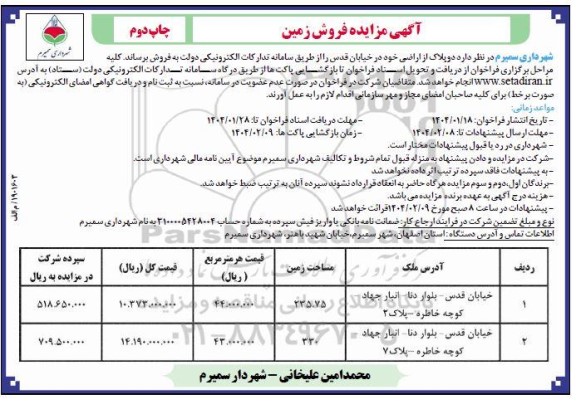 آگهی مزایده فروش زمین ؟ چاپ دوم