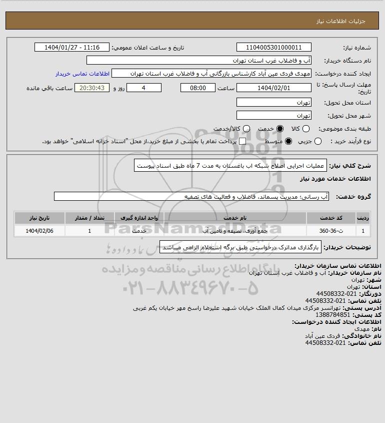 نام دستگاه خریدار:آب و فاضلاب غرب استان تهران
