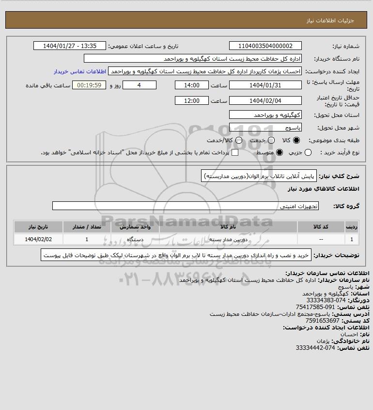 نام دستگاه خریدار:اداره کل حفاظت محیط زیست استان کهگیلویه و بویراحمد