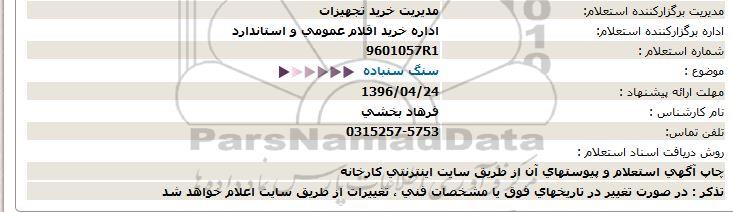 اداره برگزارکننده استعلام: اداره خرید اقلام عمومی و استاندارد