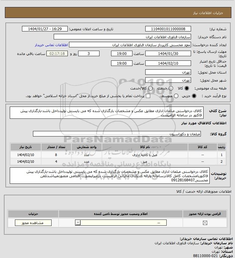 نام دستگاه خریدار:سازمان فناوری اطلاعات ایران