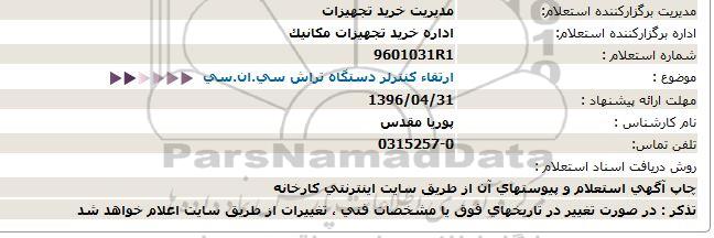 اداره برگزارکننده استعلام: اداره خرید تجهیزات مكانیك