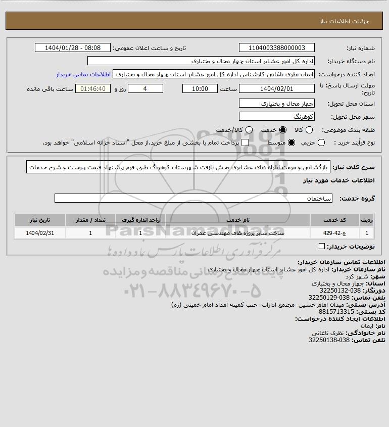 نام دستگاه خریدار:اداره کل امور عشایر استان چهار محال و بختیاری