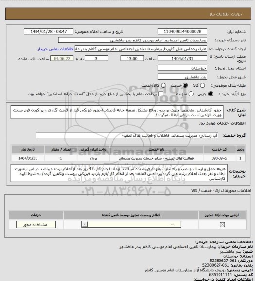 نام دستگاه خریدار:بیمارستان تامین اجتماعی امام موسی کاظم بندر ماهشهر