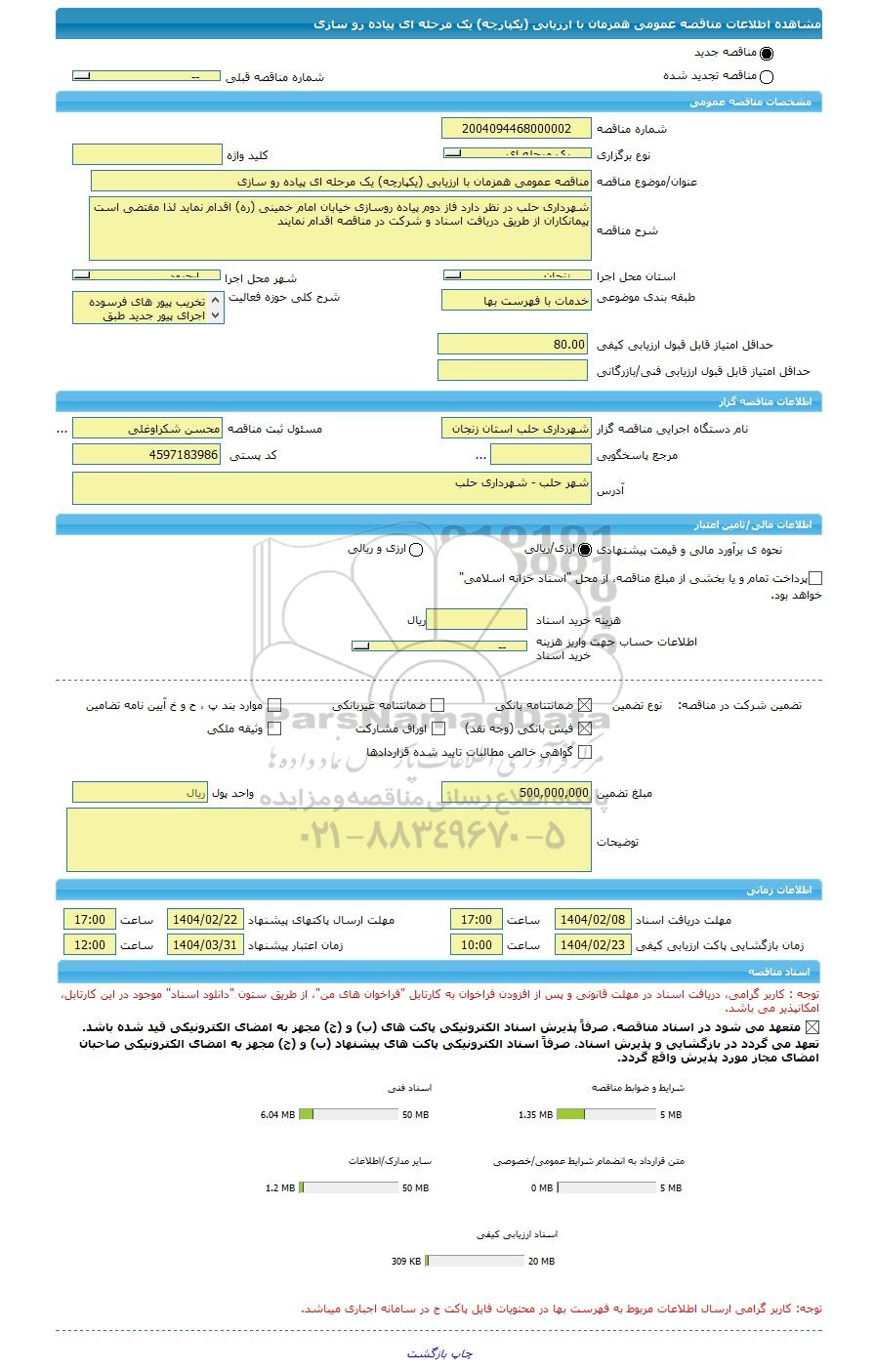 | مبلغ تضمین | 500,000,000 | واحد پول | ریال |