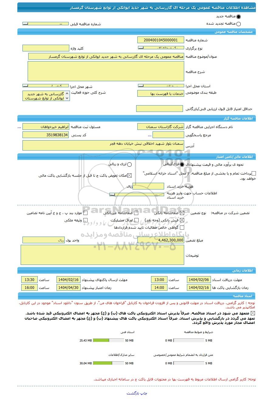 مناقصه مناقصه عمومی یک مرحله ای گازرسانی به شهر جدید ایوانکی از توابع شهرستان گرمسار, مناقصه، مناقصه عمومی یک مرحله ای گازرسانی به شهر جدید ایوانکی از توابع شهرستان گرمسار