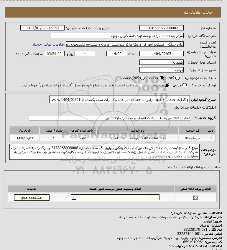 نام دستگاه خریدار:مرکز بهداشت درمان و مشاوره دانشجویی نهاوند