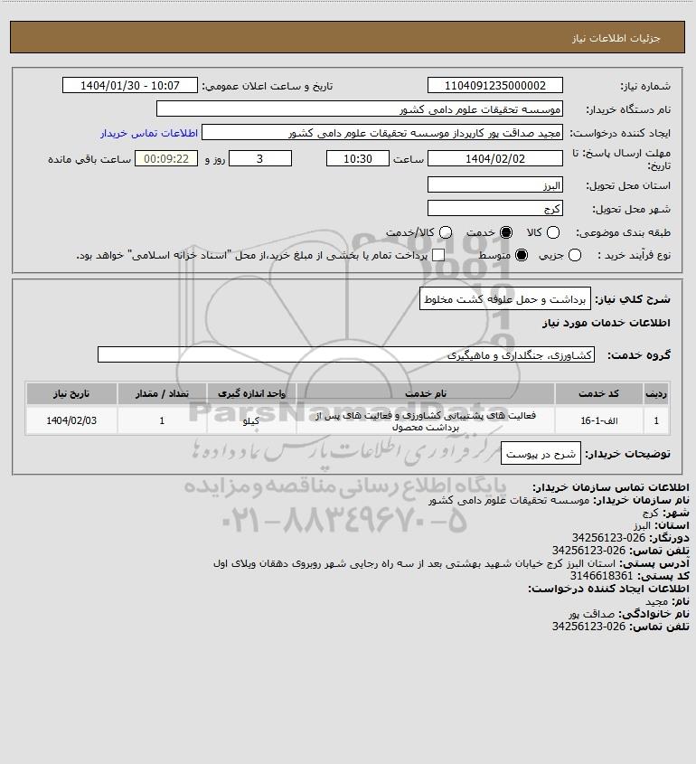 نام سازمان خریدار: موسسه تحقیقات علوم دامی کشور