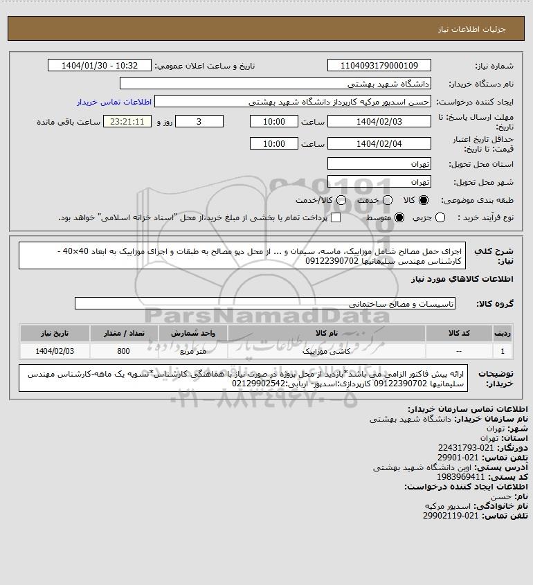| 1 | -- | کاشی موزاییک | متر مربع | 800 | 1404/02/03 |