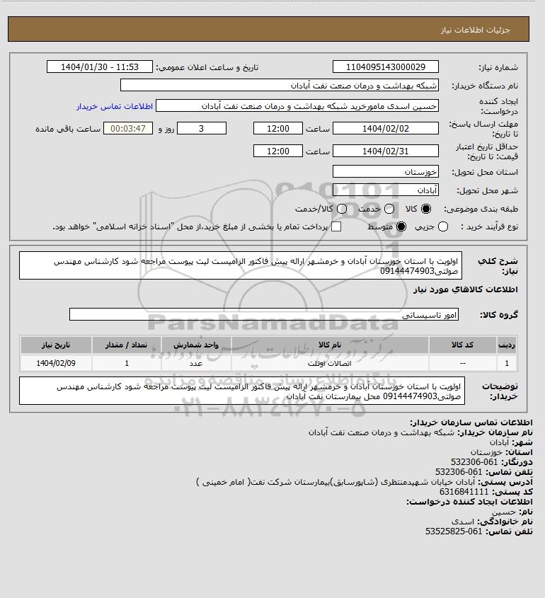 نام دستگاه خریدار:شبکه بهداشت و درمان صنعت نفت آبادان