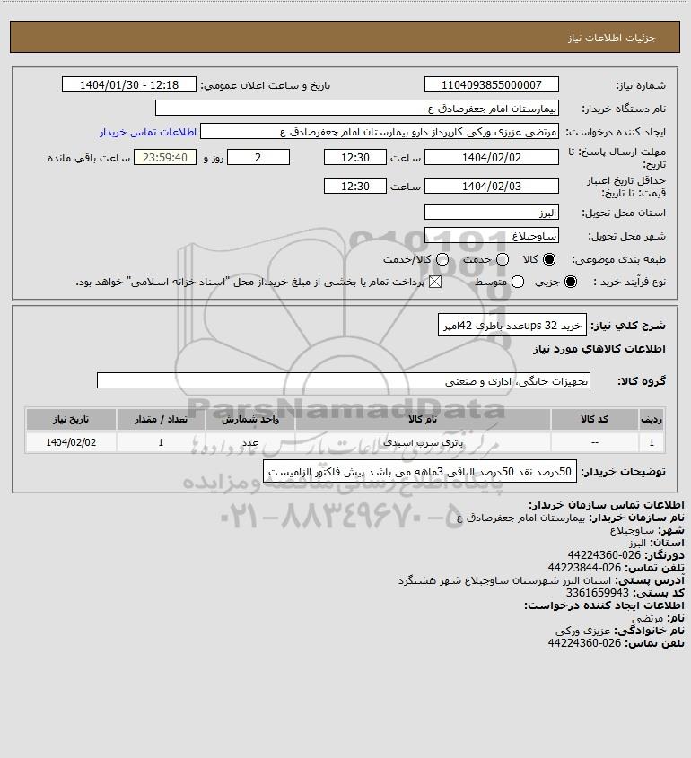 شرح کلی نیاز: خرید ups 32عدد باطری 42امپر