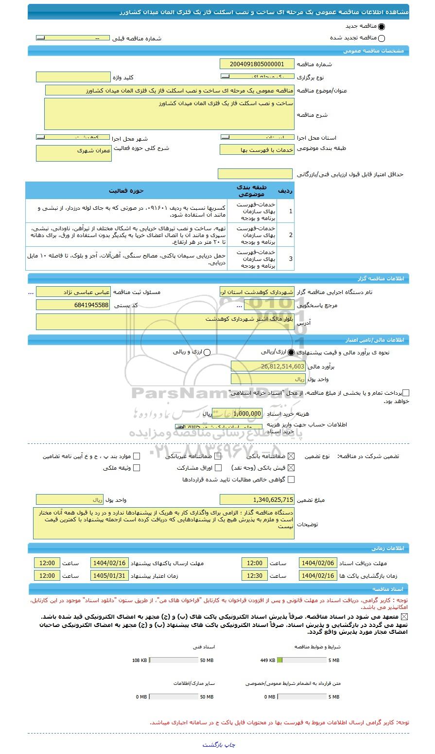 | مبلغ تضمین | 1,340,625,715 | واحد پول | ریال |