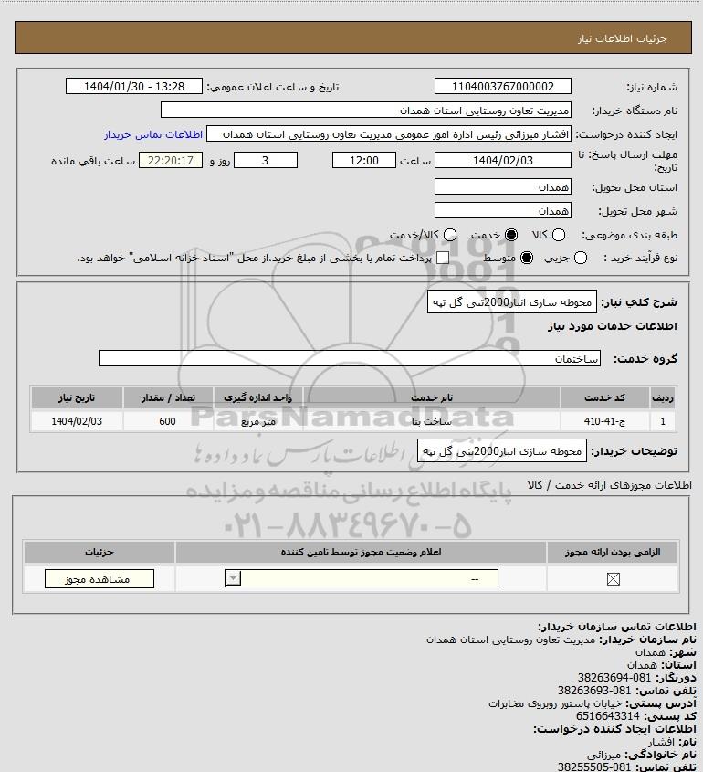 استعلام محوطه سازی انبار2000تنی گل تپه, استعلام محوطه سازی انبار2000تنی گل تپه
