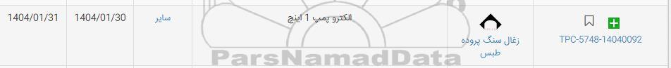 | TPC-5748-14040092 | زغال سنگ پروده طبس | الکتروپمپ 1 اینچ | 1404.1.31 |