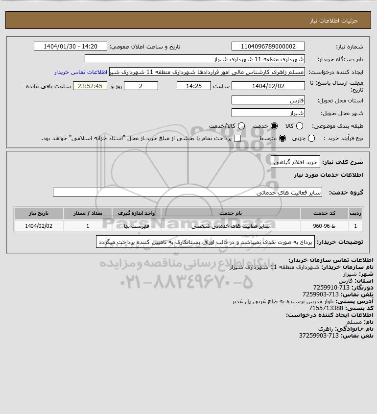 نام دستگاه خریدار:شهرداری منطقه 11 شهرداری شیراز