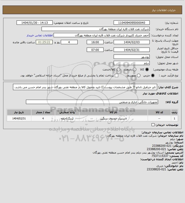 نام دستگاه خریدار:شرکت نفت فلات قاره ایران منطقه بهرگان