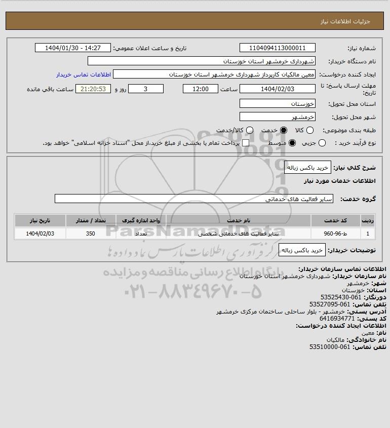 نام دستگاه خریدار:شهرداری خرمشهر استان خوزستان