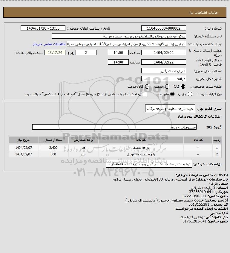 استعلام خرید پارچه تنظیف و پارچه ترگال, استعلام خرید پارچه تنظیف و پارچه ترگال