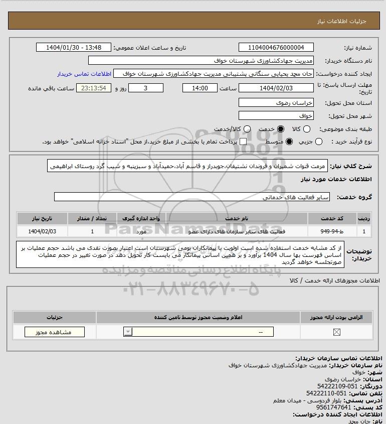 نام دستگاه خریدار:مدیریت جهادکشاورزی شهرستان خواف