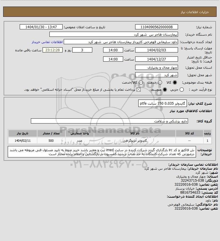 | 1 | -- | گایدوایر آنژیوگرافی | عدد | 500 | 1404/02/11 |