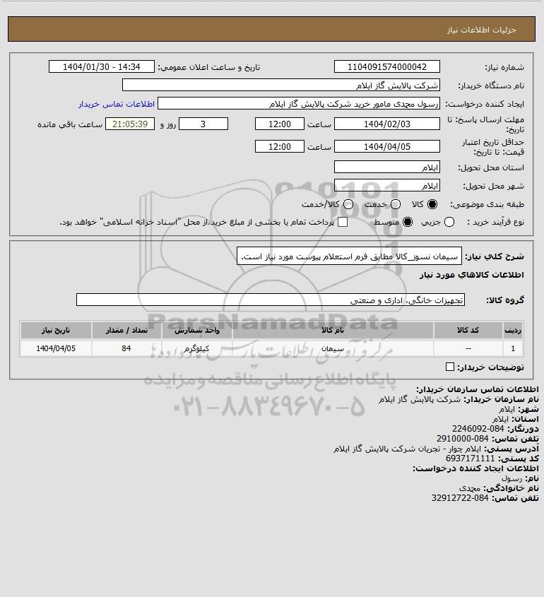 نام دستگاه خریدار:شرکت پالایش گاز ایلام