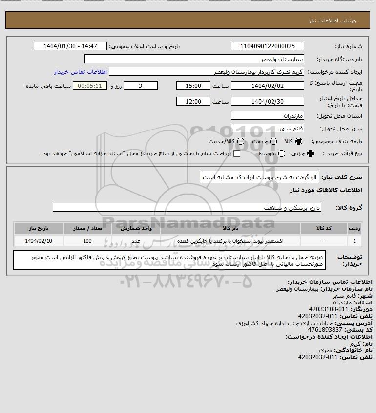 شرح کلی نیاز: آلو گرفت به شرح پیوست ایران کد مشابه است