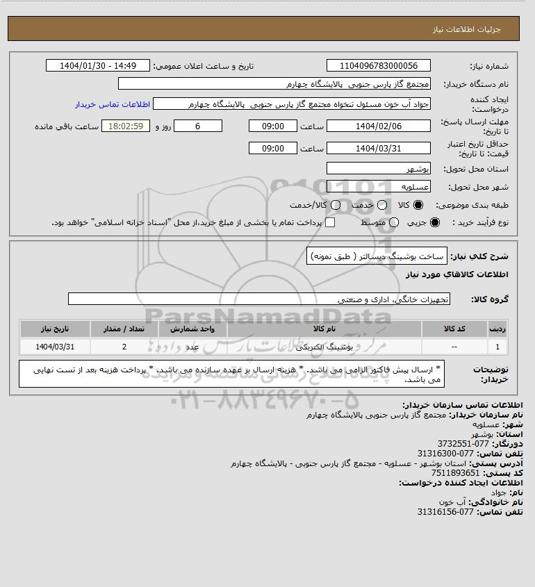 نام دستگاه خریدار:مجتمع گاز پارس جنوبی پالایشگاه چهارم