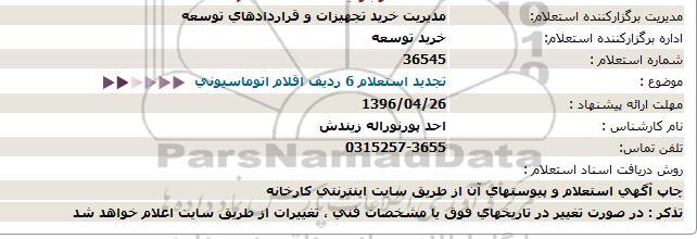 موضوع: استعلام 6 ردیف اقلام اتوماسیونی