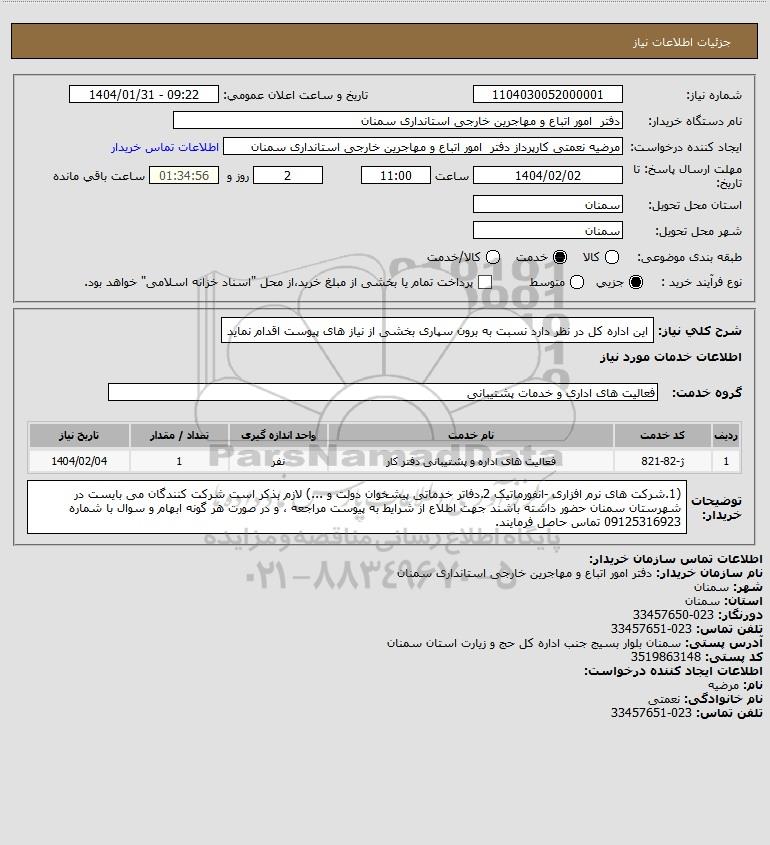 نام دستگاه خریدار:دفتر امور اتباع و مهاجرین خارجی استانداری سمنان