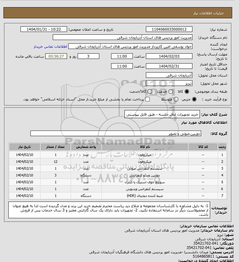 | 3 | -- | سیستم کنفرانس صوتی | عدد | 1 | 1404/02/10 |