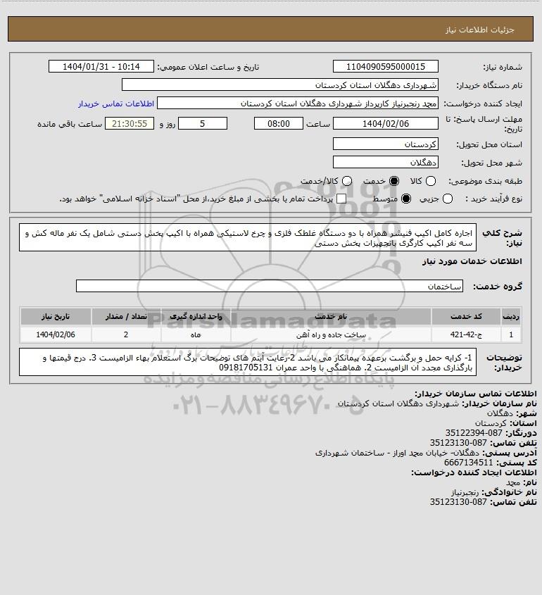 نام دستگاه خریدار:شهرداری دهگلان استان کردستان