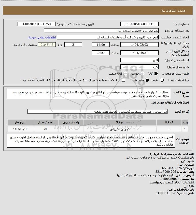 نام دستگاه خریدار:شرکت آب و فاضلاب استان البرز