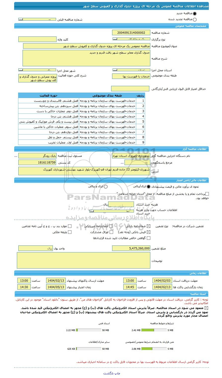 | شرح مناقصه | جدول گذاری معابر سطح شهر بافت قدیم و جدید | ||||||||||||||||||||||||||||||||