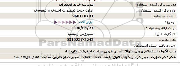 اداره برگزارکننده استعلام: اداره خرید تجهیزات ایمنی و عمومی