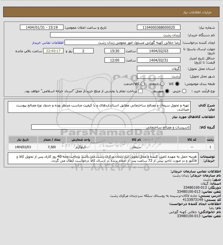 | 1 | -- | سیمان | کیلوگرم | 7,500 | 1404/02/03 |