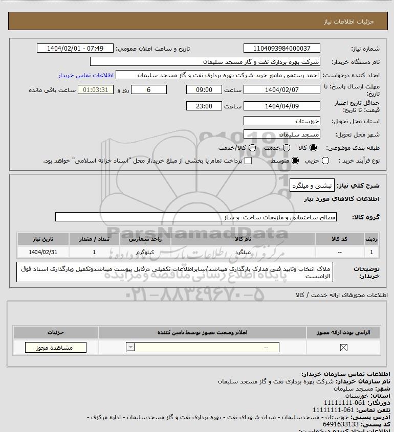 شماره نیاز: 1104093984000037