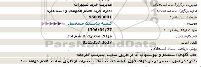 اداره برگزارکننده استعلام: اداره خرید اقلام عمومی و استاندارد