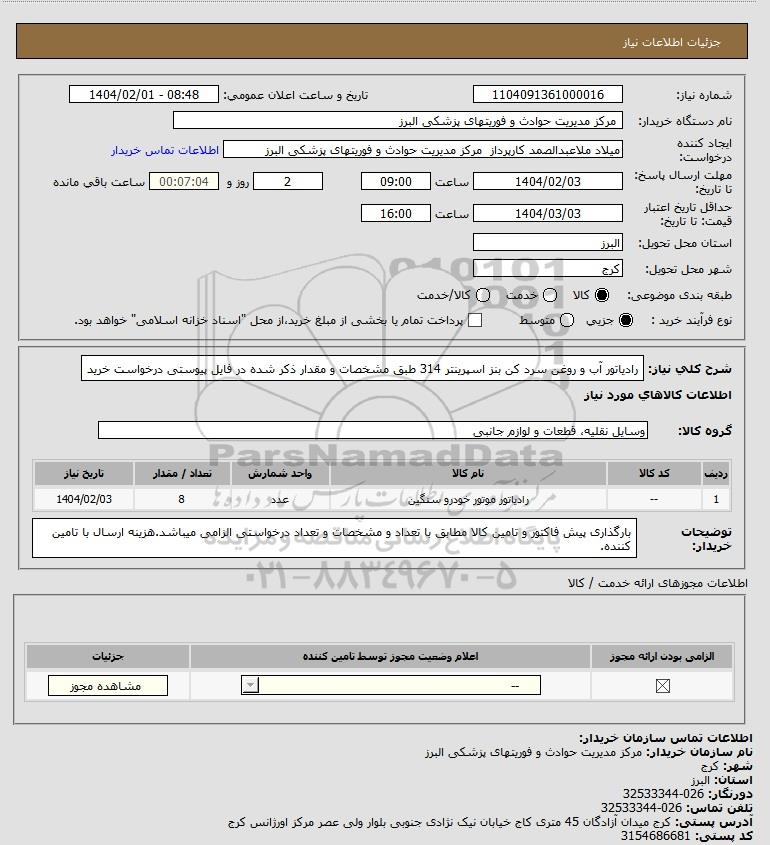 نام دستگاه خریدار: مرکز مدیریت حوادث و فوریتهای پزشکی البرز