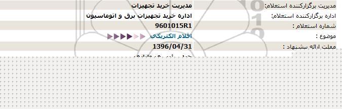 اداره برگزارکننده استعلام: اداره خرید تجهیزات برق و اتوماسیون