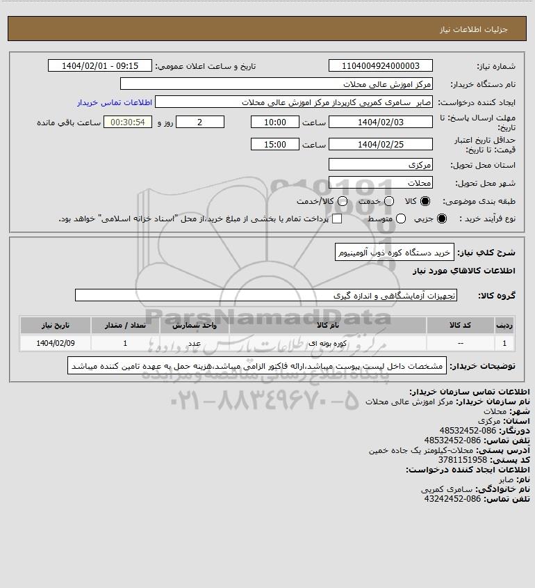 | 1 | -- | کوره بوته ای | عدد | 1 | 1404/02/09 |