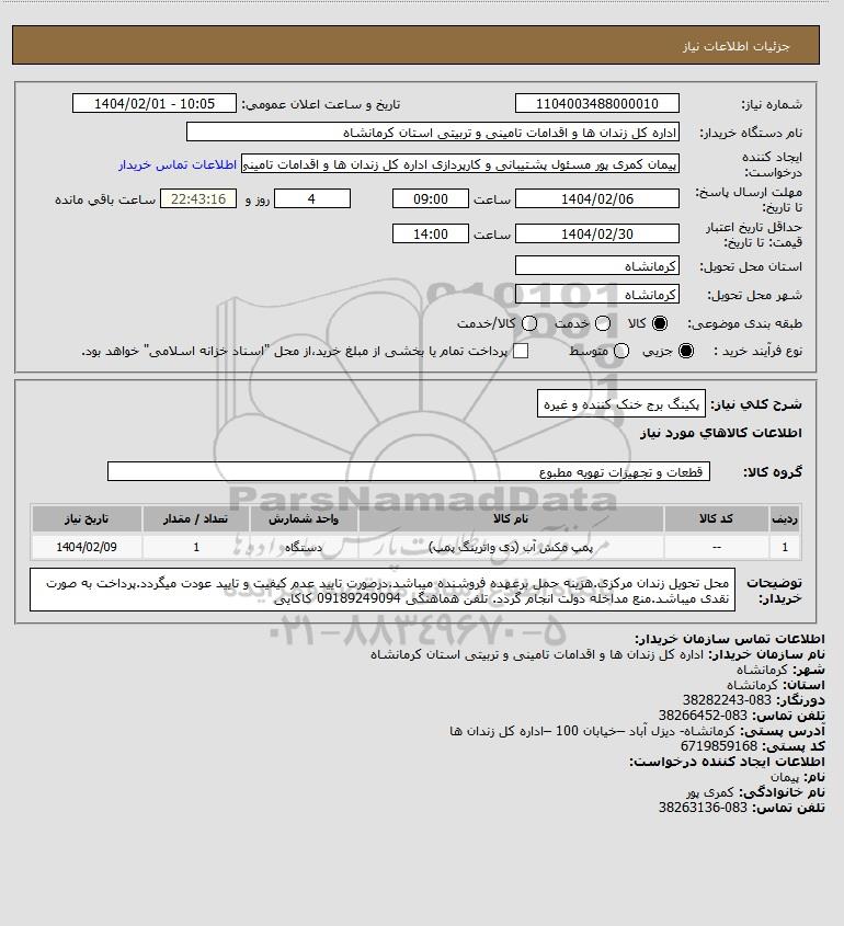 نام دستگاه خریدار:اداره کل زندان ها و اقدامات تامینی و تربیتی استان کرمانشاه