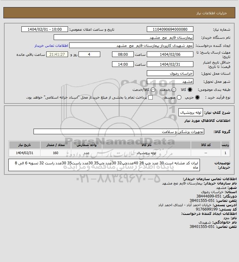 نام دستگاه خریدار:بیمارستان قایم عج مشهد