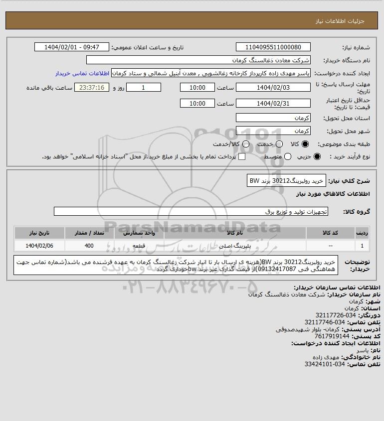 نام دستگاه خریدار:شرکت معادن ذغالسنگ کرمان