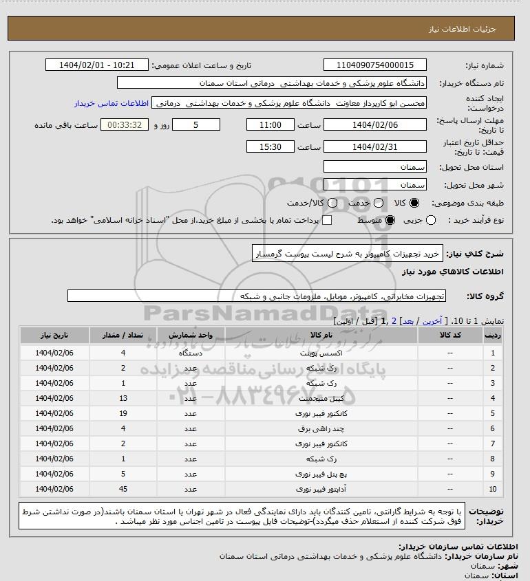 شرح کلی نیاز: خرید تجهیزات کامپیوتر به شرح لیست پیوست گرمسار